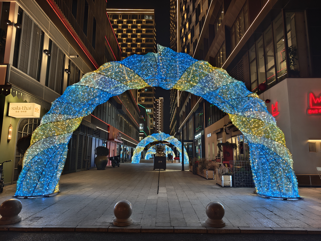 活動當(dāng)晚,阿卡貝拉樂團(tuán)的動人歌聲為亮燈儀式拉開序幕。80萬顆LED燈珠組成的8米高流光燈帶同步點亮,與13米高的巨型云杉童話樹交相輝映,搭配光影瀑布、歐洲網(wǎng)紅天使燈陣、光影堤岸等多組藝術(shù)裝置,將青怡坊云瑯打造成流光溢彩的“童話秘境”。游客穿梭其中,步步皆景、處處可打卡,沉浸式感受“現(xiàn)實版童話世界”的獨特魅力。