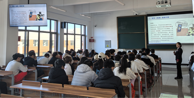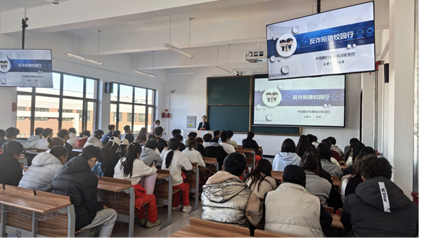 活動(dòng)現(xiàn)場(chǎng),臨河街支行的工作人員結(jié)合高校校園詐騙的高發(fā)特點(diǎn),以通俗易懂的語(yǔ)言為師生們帶來(lái)了一場(chǎng)干貨十足的反詐宣講。宣講環(huán)節(jié)中,工作人員首先從“什么是電信網(wǎng)絡(luò)詐騙”切入,系統(tǒng)講解了電信網(wǎng)絡(luò)詐騙的定義、常見(jiàn)類(lèi)型及隱蔽性、迷惑性特點(diǎn),讓師生們對(duì)這類(lèi)違法犯罪行為建立起清晰認(rèn)知。隨后,通過(guò)“以案說(shuō)詐”的形式,工作人員選取了近年來(lái)高發(fā)的校園貸、刷單返利、冒充老師同學(xué)借錢(qián)、虛假購(gòu)物退款等典型詐騙案例,深入剖析了詐騙分子的作案手法、話術(shù)陷阱以及受害者的受騙心理,用真實(shí)案例敲響安全警鐘,讓師生們直觀感受詐騙的危害性。