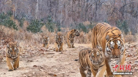 中新社長(zhǎng)春12月26日電 (記者 郭佳)記者26日從東北虎豹國(guó)家公園管理局獲悉,今年11月8日,在公園的琿春片區(qū)監(jiān)測(cè)到一只雌性野生東北虎帶領(lǐng)五只幼崽出現(xiàn),這是中國(guó)首次拍到“六虎同框”影像。