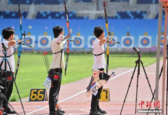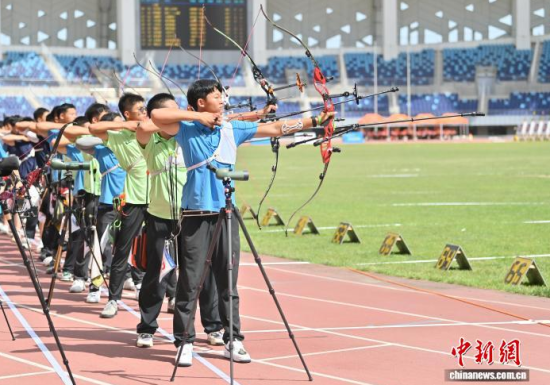 8月21日,吉林長春,運動員參加比賽。 當日,2025年全國射箭U16、U18錦標賽在長春開賽,中國各地96支射箭隊的721名運動員張弓搭箭,一較高下。 中新社記者 張瑤 攝