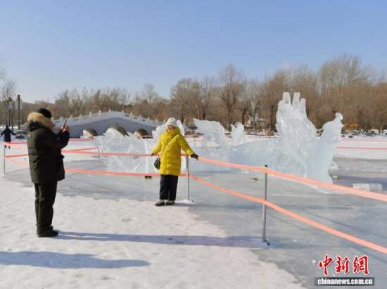 1月20日,在長(zhǎng)春市南湖公園,“龍鳳呈祥”冰雕吸引市民駐足觀看 。該冰雕主體為一條長(zhǎng)達(dá)45米的冰龍與一只展翅約20米的冰鳳凰組成,兩者遙相呼應(yīng),蜿蜒盤旋在冰面上。冰雕充分利用了北方冬季的自然條件,在陽(yáng)光下晶瑩剔透,成為公園內(nèi)一道醒目的冬日景觀。中新社記者 張瑤 攝