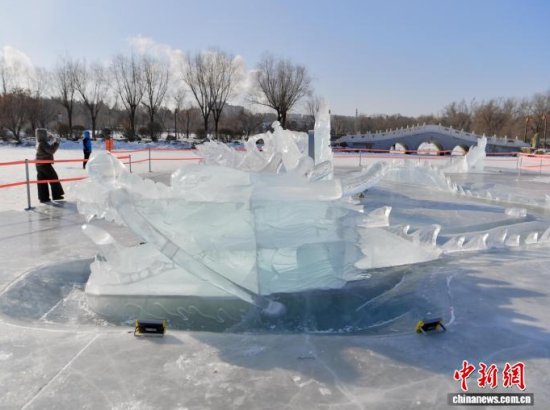 吉林長(zhǎng)春:“龍鳳呈祥”巨型冰雕吸引市民