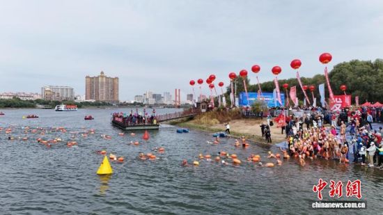 2025吉林市“金秋橫渡 松花江上”暢游活動7日拉開帷幕。來自吉林、黑龍江、遼寧、河北等地的200名游泳愛好者挑戰(zhàn)自我,體驗東北“不凍江”的獨特魅力。